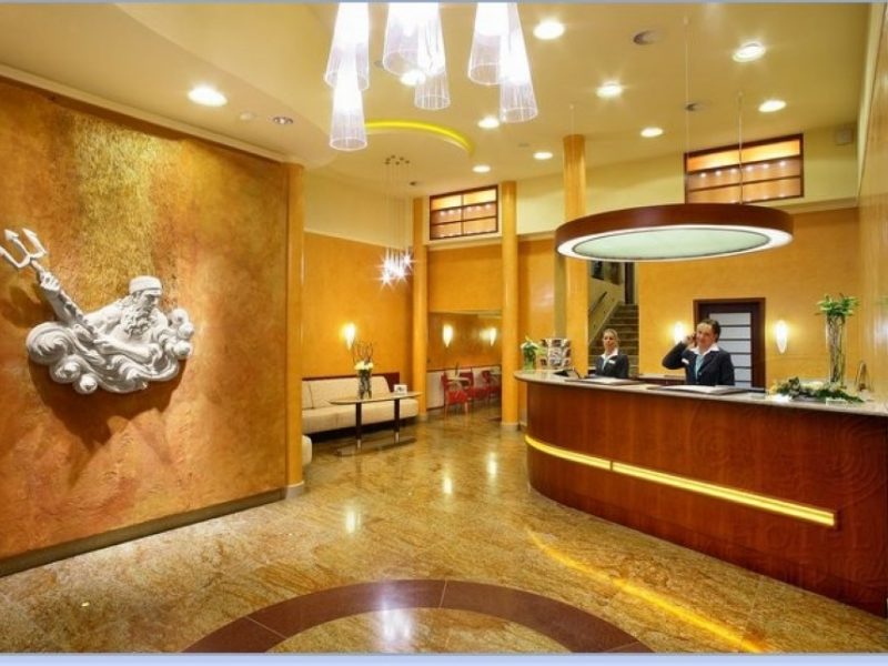 Triton Stalactite (основной ресторан в подвале отеля, оформленный в форме пещеры и недавно открывшийся после реставрации, помещение обставлено в стиле art nouveau и украшено скульптурами античной мифологии; в меню — блюда международной и традиционной чешской кухни; винный погреб; живая фортепианная музыка); Lobby Bar (бар в холле отеля с летней террасой, бар обставлен мебелью из темного дерева и черной кожи); круглосуточная служба доставки еды и напитков в номера, платный трансфер из аэропорта (по предварительной договоренности), охраняемая платная парковка, прокат автомобилей, пункт обмена иностранной валюты, круглосуточная служба ресепшн, портье, швейцар, консьерж: помощь при выборе экскурсий, заказ билетов на различные культурные мероприятия и столиков в ресторанах; сейфы для хранения ценных вещей на ресепшн, служба хранения багажа, в здании отеля есть лифты, магазины, в том числе сувенирный магазин и газетный киоск, прачечная, химчистка, глажка, чистка обуви, при необходимости – услуги врача; бизнес-центр: факс, ксерокс, принтер, доступ в Интернет (за дополнительную плату), секретарские услуги; бесплатные газеты в холле отеля, служба доставки газет и журналов в номера, возможность проведения банкетов и конференций, прокат аудиовизуального оборудования, обслуживание банкетов.