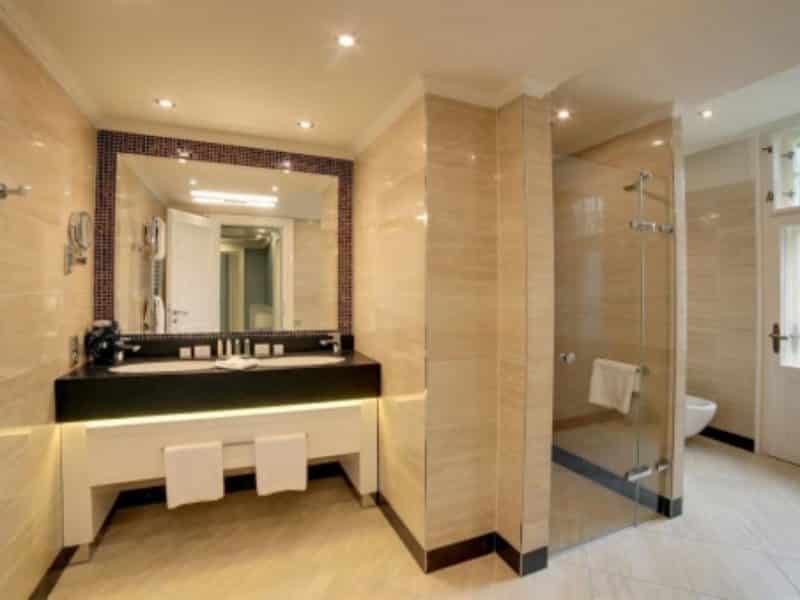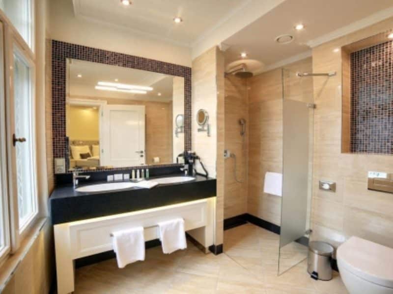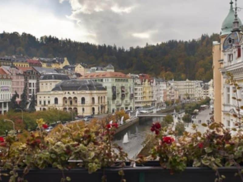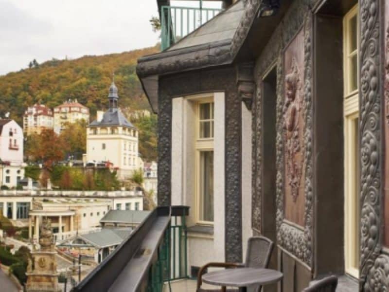Ванная комната с душевой кабиной, биде, фен, косметическое зеркало, бесплатные туалетно-косметические принадлежности, тапочки, халат, телефон, LCD телевизор со спутниковыми каналами, мини-бар, бесплатный Wi-Fi, из номеров открывается вид на Театральную площадь, улицу Тржиште, Теплу, Гейзерную колоннаду или собор Марии Магдалены.