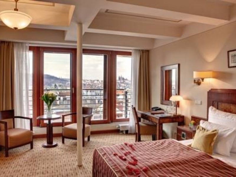 отель Мажестик Плаза был открыт в августе 2007 и располагается в самом центре Праги, всего в нескольких шагах от всемирно известной Вацлавской площади. Отельный комплекс состоит из двух, соединенных между собой зданий. Главное здание отеля, со стороны улицы Штепанска, было построено в начале 20 столетия и перед реконструкцией представляло собой первое офисное здание в Праге. Все номера в этом здании декорированы в стиле начала 20 столетия Арт Деко. Второстепенное здание располагается со стороны улицы Школьска, здание было построено в начале 19 столетия. Изначально этот дом служил, как обычный жилой, и являлся привычным для Праги архитектурным строением, с так называемыми Павлачовыми дворами. В настоящее время это здание используется для проживания отелем, однако оно не утратило для города своего исторического интереса, так как именно в этом доме родился всемирно известный чешский писатель Ярослав Гашек — автор книги о похождениях бравого солдата Швейка. Номера в этом здании декорированы в стиле конца 19 столетия — Бидермаер. Внутри двух соединенных зданий для гостей отеля открыт небольшой и очень уютный дворик, который используется, как терраса для завтраков, обедов и ужинов, а также для кофе-пауз во время конференций и общественных мероприятий.