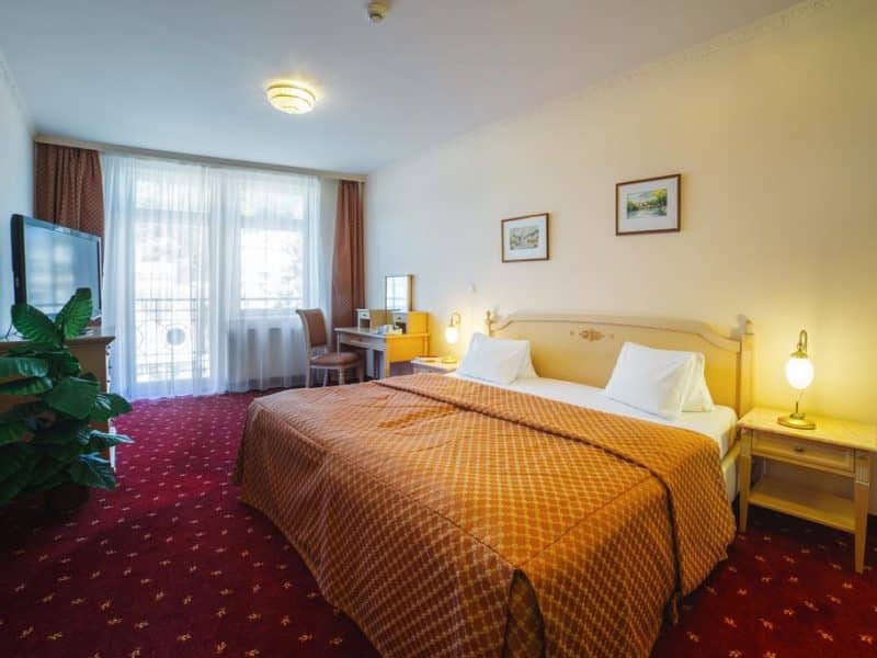 - Double de Luxe (37 м2) — комфортабельный двухместный номер высшей категории, возможно с балконом, в ванной комнате — ванна, бидэ, размер кроватей 200х200 см, возможны дополнительная и детская кровати;
