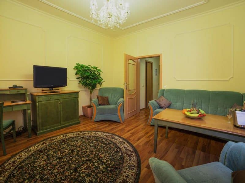 - Suite de Luxe (48 м2) — комфортабельный апартамент высшей категории, возможно с балконом, в ванной комнате — ванна, бидэ, размер кроватей 200х200 см, возможны дополнительная и детская кровати;