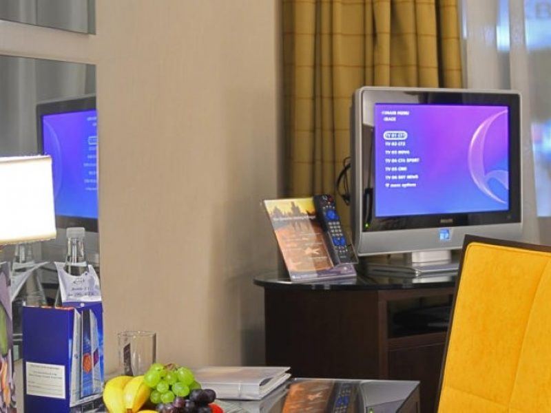 спутниковое телевидение (русские каналы), телефон с прямым выходом, кондиционер, Интернет, мини-бар, room-service, сейф, ванная комната с ванной и WC, фен.