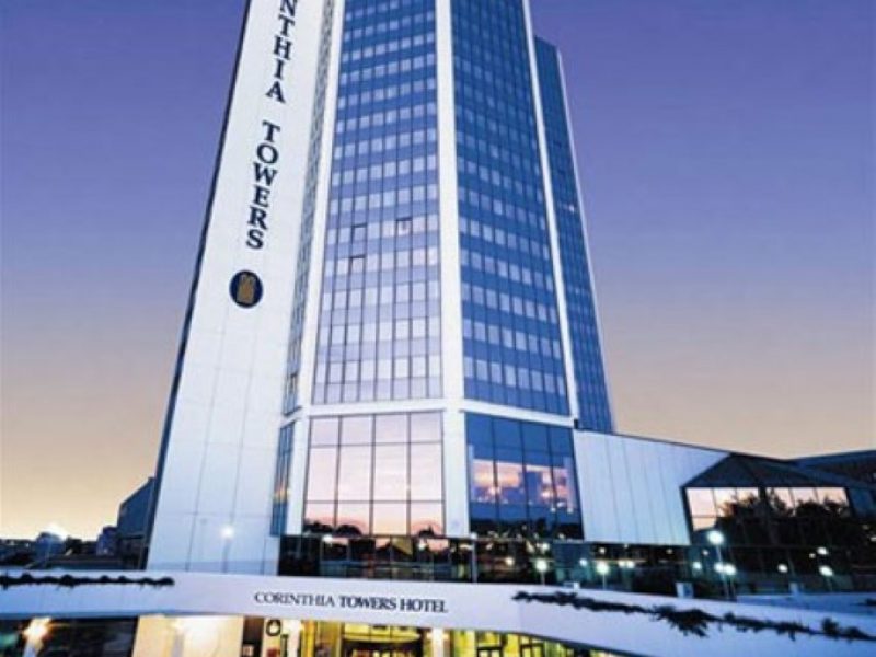 расположен на вершине одного из пражских холмов рядом с конгресс-центром. Из здания-небоскреба открывается завораживающий вид на самый романтичный город в Европе. Corinthia Towers Hotel является составляющей частью Corinthia’s Premier Collection, в которую входят эксклюзивные отели, имеющие ряд наград и лидирующие в гостиничном бизнесе по своим месторасположениям. В 2004 году Corinthia Towers Hotel был признан лучшим WORLDHOTELS (бывшие SRS-Worldhotels) по проведению деловых встреч, конференций и мероприятий из числа 500 дочерних отелей по всему миру.
