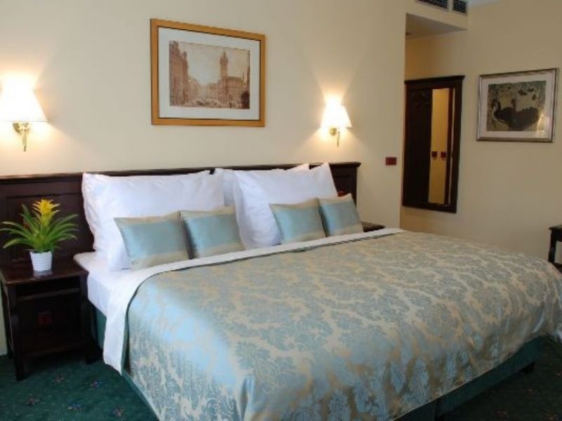 - 5 Single Room — одноместный номер, в ванной комнате — ванна и душевая кабина, размер кровати 100х200см, невозможны дополнительная и детская кровати, размер номера 14,5м2;