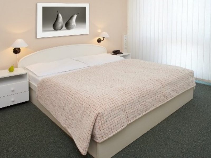 - Аpartament — аппартамент с балконом, в ванной комнате душевая кабина, размер кроватей 200х220см, возможны доплнительная и детская кровати, размер номера 35м².