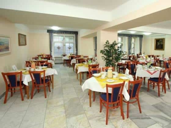 ВВ — завтрак; НВ — полупансион (завтрак и ужин); FB — полный пансион. Питание предоставляется в гостиничном ресторане в здании Манес I. Высокопрофессиональный персонал и пищевой терапевт заботятся о индивидуальном питании клиентов, предлагают большое количество диет (для диабетиков, низкохолестериновая, безглютеновая), разгрузочных программ и вегетарианских блюд. В коридоре между заново отремонтированным зданием Чапек и Манесом I находится ресторан МАНЕС с летней террасой, который открыт с 10:00 до 22:00 часов, или по программе.