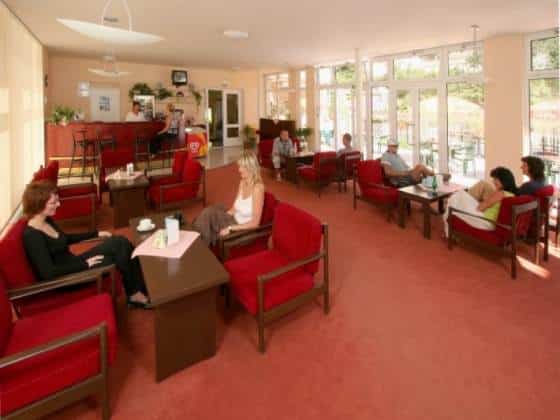 Ресторан, бар, кафе, гимнастический зал, фитнесс, спортплощадка, сауна (5 мест — цена 4 Евро/45 минут), рядом с санаторием живописный пруд, автопарковка 2 евро/1 день, Wi-Fi подключение к интернету как в здании отеля так и в номерах, сейф на рецепции бесплатно, рецепция работает NonStop, информационная служба, 1 раз в неделю живая музыка.