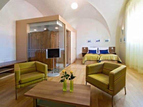 расположен в центре города, в 5 км от ж/д вокзала, в 20 км от аэропорта. Романтичный отель с удобным расположением в историческом сердце Праги в красивом саду Strahov Monastery с незабываемым видом на город.