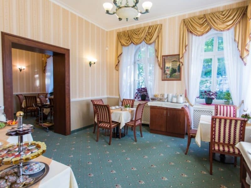 Расположен в курортном центре Карловых Вар, в спокойном и тихом месте прямо над знаменитой Мельничной колоннадой всего в нескольких шагах от лечебных источников. Персонал обеспечит для Вас курортное лечение, билеты на культурные и спортивные мероприятия. Отель Ontario предназначен для некурящих! Но гости могут закурить на лавочке у отеля.