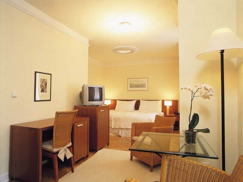 - Double Standart: Комфортабельный номер, в ванной комнате душевая кабина, размер кровати 200х200 см, невозможна дополнительная кровать, детская кроватка за доп. оплату, размер номера 20 м2.