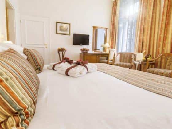 Здание гостиницы, возведённое в 1888 году как жилой дом, в настоящее время находится в списке архитектурного наследия ЮНЕСКО. В 2003 году здание было полностью реконструировано и превратилось в фешенебельный отель с 50 просторными и удобными гостиничными номерами. Современные удобства отеля, такие как телевизоры с приёмом спутниковых каналов и каналов платного отельного телевидения, доступ в сеть Интернет, звукоизоляционные окна и двери, не нарушают романтическую атмосферу здания, построенного в стиле неоренессанса. Гостиница располагается в непосредственной близости от Вацлавской площади и вблизи основных исторических памятников Праги. Отель расположен в трёх минутах ходьбы от станции метро »Muzeum» или »I.I.Pavlova», а также близи остановок трамваев № 4, 6, 10, 16, 22, 11, 9, 14 и 24. Главный пражский вокзал находится всего в двух километрах от отеля. Пражский международный аэропорт «Ruzyne» расположен в 18км от отеля (примерно полчаса езды на автомобиле).