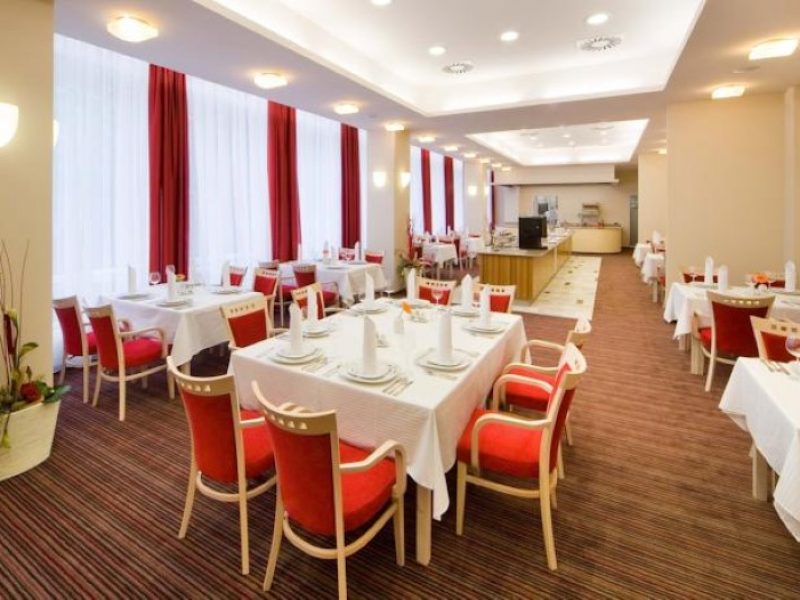 В санатории 3 ресторана общей вместительностью 582 эеловека. Два бара на 153 человека. Ресторан Charlеston, курение запрещено — просторный и модерный ресторан с богатыми цветочными украшениями — время работы 7:30-10:00, 12:00-14:30, 17:30-20:00. Ресторан Melody, курение запрещено — ресторан модерного типа, форма питания — шведский стол — время работы 7:30-10:00, 12:00-14:30, 17:30-20:00 . Ресторан Opera, курение запрещено — люксовый ресторан с атрактивным дизайном, форма питания — шведский стол, A la carte — готовка блюд прямо перед гостем Show kitchen — время работы 7:00-10:00, 12:00-15:00, 18:00-22:00. Бар Blues Cafe, курение разрешено — танцевальный бар с модерным интерьером и баром, широкий выбор теплых и холодных напитков и коктейлей, замечательный выбор вин и сигар, A la carte — теплые и холодные блюда, в летний период открыта терраса — количество мест — 76+7 у бара+24 летняя терраса — время работы 9:00-24:00. Лобби — бар с летней террасой + Atrium, курение разрешено — отличное место для отдыха с обслуживанием, широкий выбор теплых и холодных напитков, 70 мест, время работы — 9:00-24:00