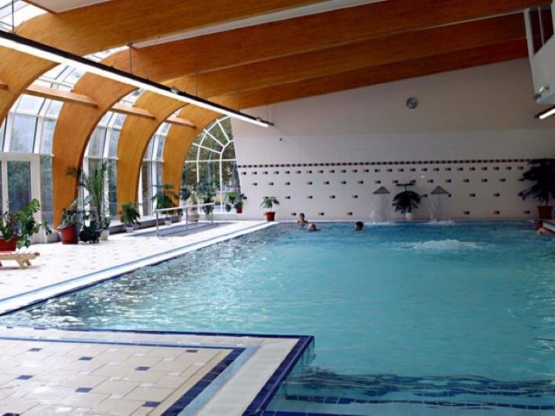 Бассейн размером ( 16,66м х 8м х 1,4м ), теплота воды 28°C, в бассейне расположены водяные массажные устройства. Сауна максимально на 18 человек. Whirlpool максимально на 8 человек.
