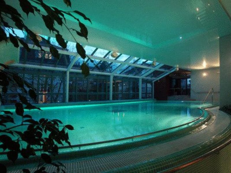 Уникальный гостиничный вельнес на последнем этаже отеля Skyland, где для гостей есть финская баня, парная, тепидарий, солярис, вирпул и бар — (все сауны для гостей отеля бесплатно). Но истинной жемчужиной является большой бассейн ( размер 15м х 6м, открыт ежедневно от 9:00 до 21:00 для гостей отеля бесплатно ), со встречным течением и водопадами, из которого благодаря стеклянному потолку и стенам можно обозревать небо и окружающую природу. Все это окружено большой террасой с великолепным видом на центр курорта.