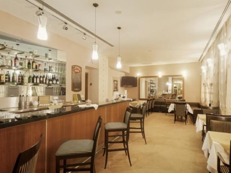 Завтраки, обеды и ужины проходят в ресторане отеля на 90 мест. В центре ресторана отведено место для танцев. На обед и ужин свободный выбор салатов и безалкогольных напитков. Теплые и горячие напитки к каждому блюду.