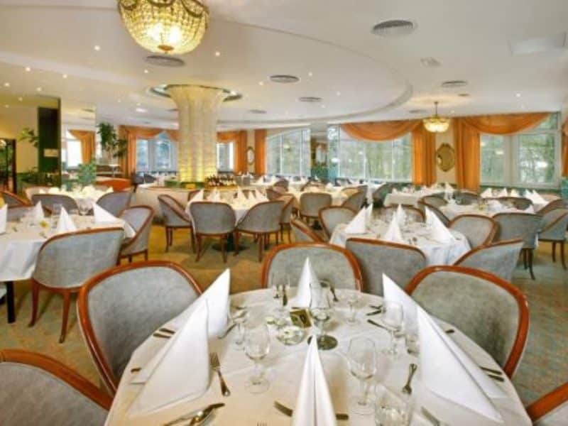 Питание во французском ресторане La Fontaine с фонтаном и салоном, украшенным керамическими картинами Мадам Баттерфляй. Ужины в сопровождении звуков арфы. Большой выбор блюд чешской, венгерской и международной кухни, прекрасные повара, вина, отобранные сомелье. Предусмотрены вегетарианская, щадящая, диабетическая и другие диеты по желанию. Возможно питание a la carte. Уголок здорового питания Danubius Healthy Choice.