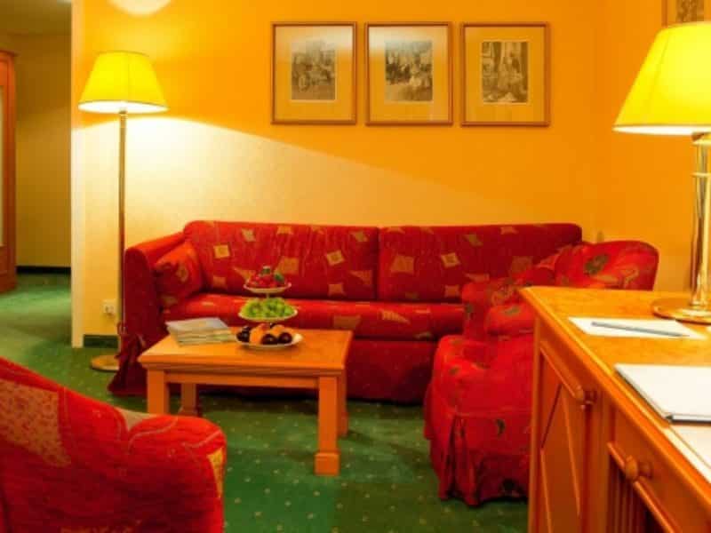 - 8 Junior Suite (36 м2) — просторный однокомнатный номер с видом на парк и гостиной зоной, двуспальной кроватью и диван-кроватью, максимальное размещение — 2 взрослых + ребенок;