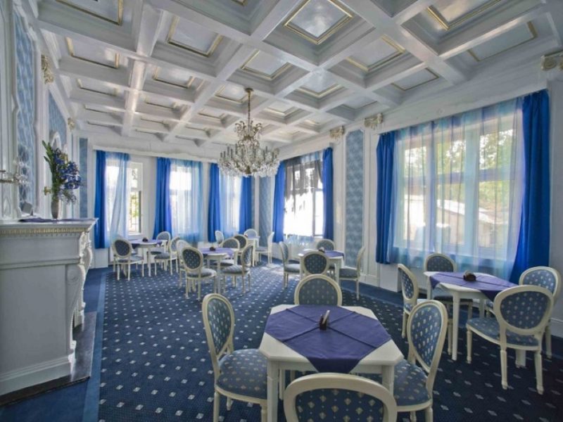 Ресторан в классическом стиле в новом здании, голубой салон в старом здании.